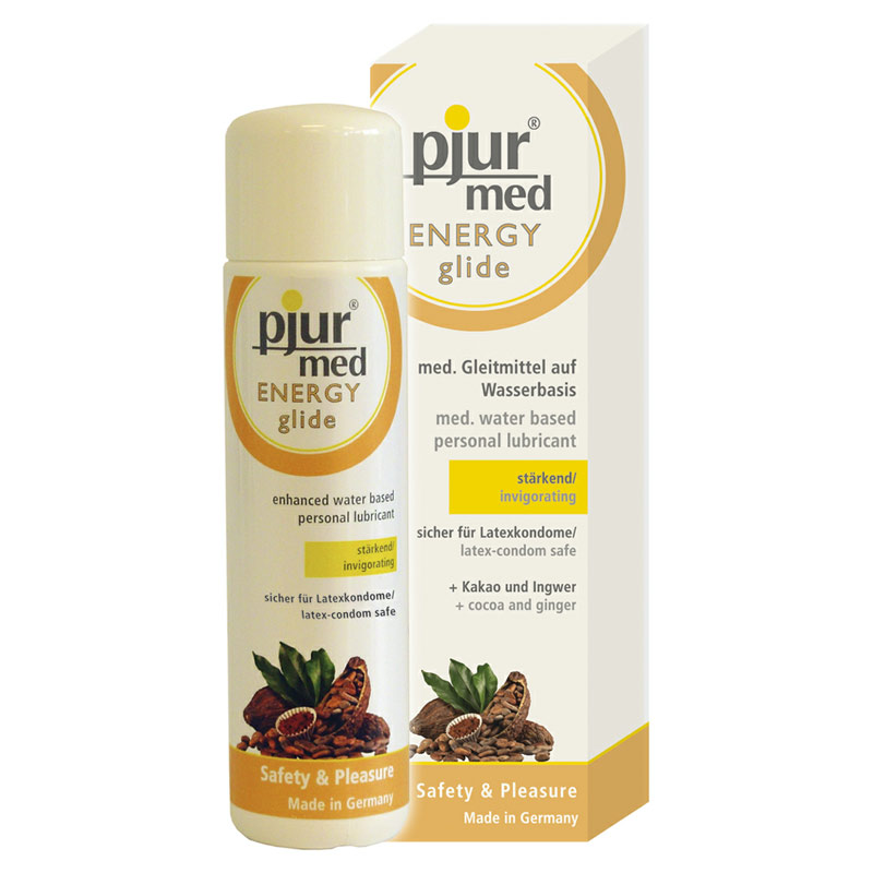 Category: Lubricants Code: 1130-3464 Pjur Energy glide is a water based lubricant including natural ingredients derived from cocoa, cardamom, ginger, and white pepper. Therobromine from cocoa provides a pleasant stimulation. Cardamom, ginger and white pepper contains antioxidative secondary plant compounds stimulating the warmth receptors of the skin and increasing circulation. It's excellent compatibility with skin and mucous membranes is dermatologically tested. Confirmed suitable with latex condoms. Volume: 100 ml Lube type: Water Based Designed for: Men and Women Brand: Pjur Lubricants