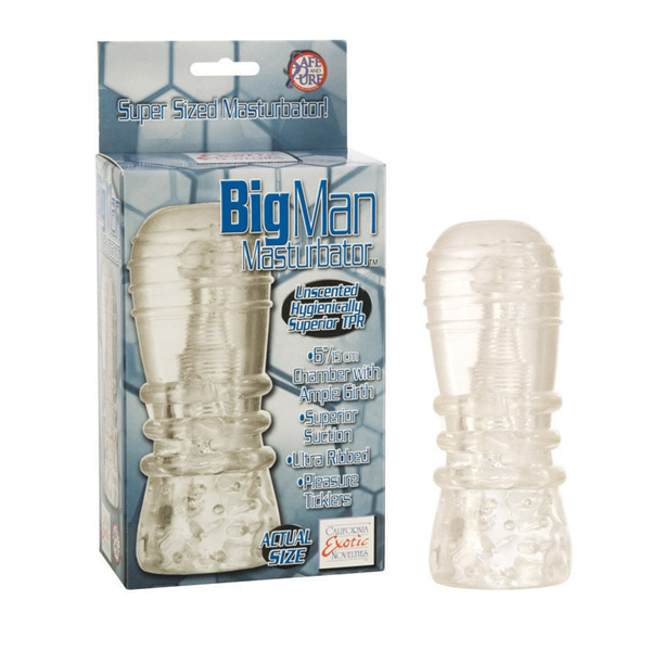 Category: Masturbators Code: 1130-1288 Feel the superior suction of this soft stretchy masturbator with its ribbed and textured interior and the amazing sensual ticklers. Get ready to explode Big Man. Closed tip bulbous head for superior suction Ultra Ribbed contoured shaft Comfortable easy grip Size: 6 Inches Color: Clear Flexibility: Very Designed for: Men Brand: California Exotic