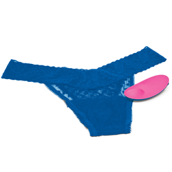 Includes Bluetooth App controlled wearable massager Blue lace thong OSFM one size fits most Privacy pouch USB charging cable Instruction manual 1 year manufacturer's warranty