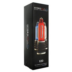 Category: Penis Enlargers Code: 1130-1162 The Bathmate Hydromax X30 is the ultimate in hydro technology for penis development and health. Size 29 cm tall uncompressed, 22 cm tall when compressed, 5 cm diameter. Introducing the new revolutionary concept in penis development. The Bathmate Hydromax X30 is the ultimate in hydro technology for penis development and health. Does all the Bathmate Hercules does and more. Hydromax generates 35 percent more suction force than the Bathmate thanks to its unique, newly designed Bellows Pump system, providing you with better, faster gains. The Bellows system now incorporates a new soft sealing, full support comfort ring to give you reduced pressure and greater comfort around the penis base and testicle region. As an added bonus, it is also removable for ease of cleaning. A new Swivel Bellows feature allows for full 360 degree positive rotation to give you full visual chamber viewing plus inclined angle change option for optimum efficiency when used in the bath or shower or when you are using the amazing new Hydromax pleasure ring system. A new Super Flow Latch Valve system allows for single hand filling in the shower, making using and positioning the hydropump much easier for you. A new metric and imperial guidance scale gives you improved visual viewing area, plus upper and lower texturing on the vacuum tube for better grip and control. The internal bellows size has been increased and the number of convolutes reduced to allow you to gain even more impressive girth expansion. Size: 11.5 Inches Color: Clear Flexibility: Firm Designed for: Men Brand: Bathmate Penis Pumps