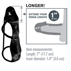 Category: Penis Sleeves Code: 1130-2027 Turn your penis into an instant pleasure machine with the incredible Fantasy Xtensions. Now you can be all the man you can be and satisfy your partner with this easy to use erection enhancer. Developed as a safe, affordable, non surgical alternative to expensive medical procedures and pills, your Fantasy Xtension will give you the biggest, thickest, most satisfying pleasure rod you ever imagined. Perfect for men with ED and midway performance problems, your new enhancer will deliver results that both partners will love. Size: 7 Inches Color: Black Flexibility: Stretchy Waterproof Designed for: Men Brand: PipeDream