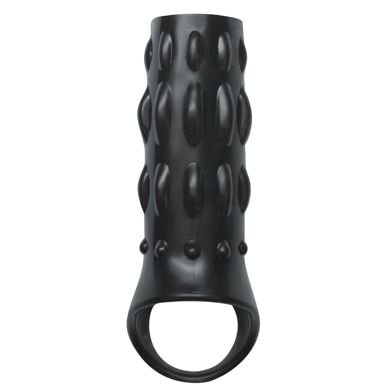 The Reversible Power Cage redefines versatility. This TPE power cage features large defined nubs to pleasure your partner during penetration. Flip the cage inside out and experience the textured surface yourself. TPE is stretchy, non sticky, water play friendly and enjoyable with lubricant. Easy to put on. Easy to clean. Add a little more easy to your intimate encounters. Size: 6 Inches Color: Black Flexibility: Very Designed for: Men Brand: NSNovelties