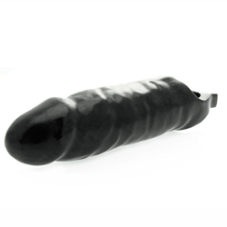 The Black Mamba is now available in an extra large version. This lifelike penis extender is sure to satisfy both you and your lover by providing an increase in size and also prolonging your erection. Simply insert your penis into the comfortable hollow shaft and slip your testicles through the stretchy ring. The extra large model features raised pleasure nubs on the inside of the shaft to provide extra stimulation for the wearer during use. Enhance your assets and get ready for action with a larger, longer lasting erection for out of this world climaxes. Size: 9.5 Inches Color: Black Flexibility: Firm Diameter: 2.5 Inches Designed for: Men Brand: Master Series