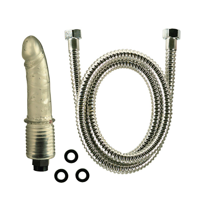 Category: Personal Hygiene Code: 1130-326 Removable perforated soft Jelly dong shaped nozzle with a non tarnishing, nickel free hose. Attaches easily to any shower PVC, dong Chromed Steel, hose. Size: 6.5 Inches Color: Brown Flexibility: Firm Designed for: Men Brand: California Exotic