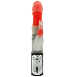 Category: Rabbit Vibrators Code: 1130-856 This is the very latest rabbit on the market. Brand new in, the FutureTech has a rotating shaft with 6 rows of metal beads that spin at six different speeds. The fabulous rabbit clit vibe is made from ultra-soft jelly and vibrates in seven modes (3 vibrating speeds, 3 pulsating speeds and 1 escalating mode). It has glow in the dark controls and 6 stage oscilation/rotation LED indicator lights. Size: 7 Inches Color: Red Flexibility: Firm Controller: Built In Diameter: 2 Inches Designed for: Women Brand: Seven Creations
