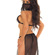 Show off your pearls of the orient with this 4 piece set. Included a see through bra and g string with tassles, face mask and skirt. 100 percent Polyamide Color: Black Flexibility: Slight Designed for: Women Brand: Rimba