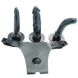 Black buckle on set of four pieces for HER and HIM or HER and HER. Enjoy the refined role games and give way to your lust and imagination. Three black dildos natural shape, slim design particularly suitable for anal pleasure and bent dildo for stimulation of the G-point plus ouvert string adjustable in size for the perfect wearing comfort. Size: 7 Inches Color: Black Flexibility: Bendable Diameter: 1.5 Inches, 1.5 Inches, 1.25 Inches Designed for: Men and Women Brand: You2Toys
