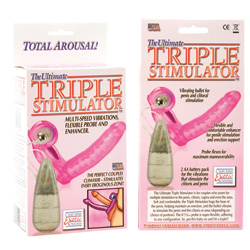 Category: Strap-on Code: 1130-729 This multi speed vibrator has a flexible dong and cock ring. One for the clitoris one for the penis and one for the anus. Excellent for HER double penetration. It has a removable bullet giving the toy use with or without vibration. Size: 6 Inches Color: Pink Flexibility: Very Controller: Wired Diameter: 2.5 Inches Designed for: Men and Women Brand: California Exotic