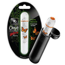 Category: Vibrators Code: 1130-4333 Having a small waterproof vibe that is discreet and easy to travel with is ideal. We have gone one step further. Onye Petite arrives with its own custom travel case to protect and store your art piece. We found a way to deliver magic sensations in a very compact design. Powerful Waterproof Travel case included Size: 3.75 Inches Color: White Flexibility: Firm Controller: Built In Waterproof Diameter: 0.75 Inches Designed for: Women Brand: Big Teaze